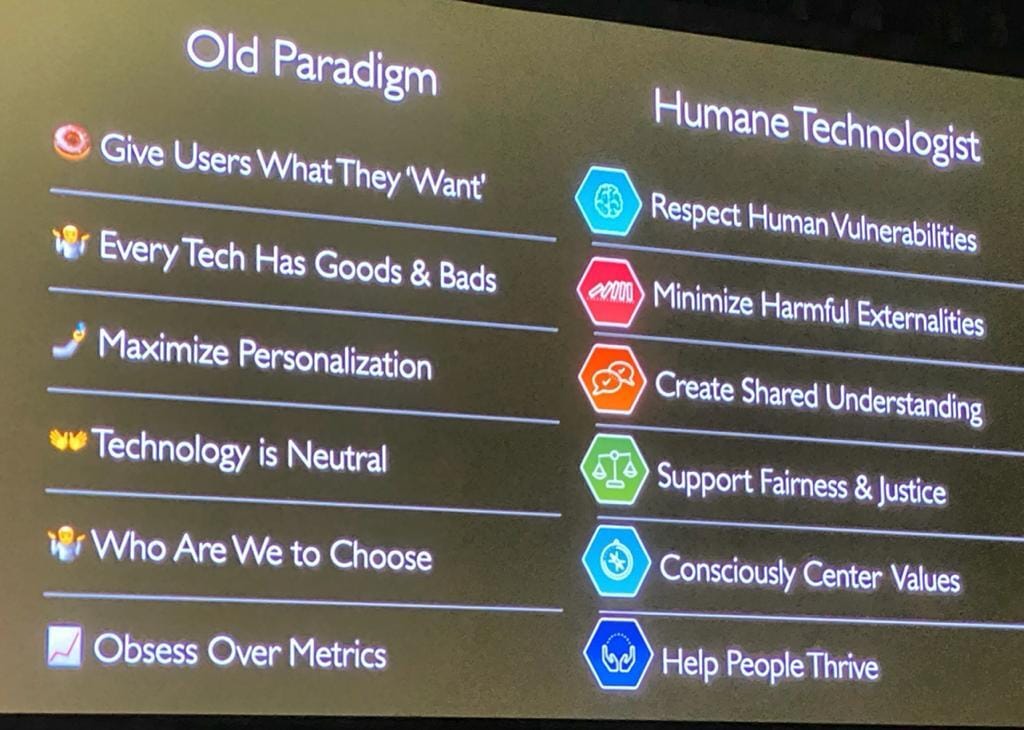 O Facebook (ou Meta) virou a grande vidraça do evento (com toda razão), mas ainda fazemos pouco a respeito das Big-Tech. Todo mundo adora falar mal, mas tomar uma atitude é outro papo. Por isso gostei tanto da iniciativa do center For Humane Technology de criar uma formação sobre o tema.