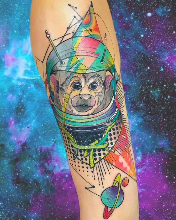 Pense nas cores mais vibrantes da caixa de lápis de cor. Pensou? Pois é com essas cores que Katie Shocrylas, uma artista canadense, cria as suas tatuagens multicoloridas que, geralmente, são compostas por animais e enquadradas por formas geométricas, cristais, folhas, flores e… cogumelos.