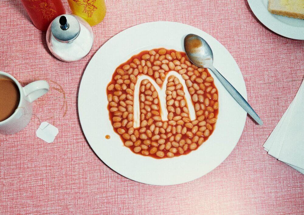 É criativa, bonita, minimalista… tem impacto. São pratos aparentemente sem muito appetite appeal, com o logo do McDonald’s desenhado do mesmo jeito que a gente fazia com o purê de batata quando era criança.