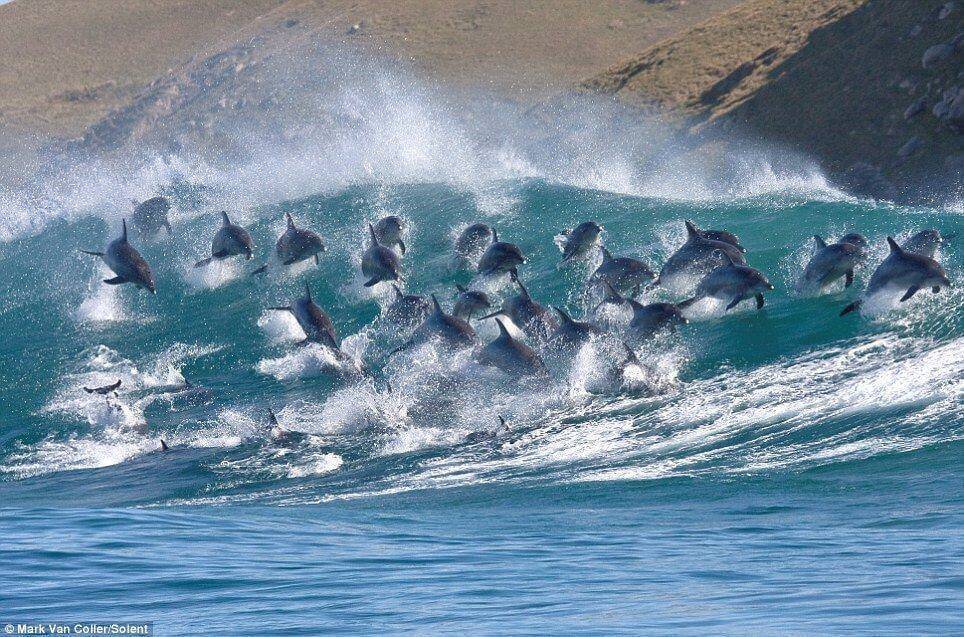 Claro, depois vi mais algumas fotos e percebi que obviamente os golfinhos tiveram a ideia muito antes dos surfistas.