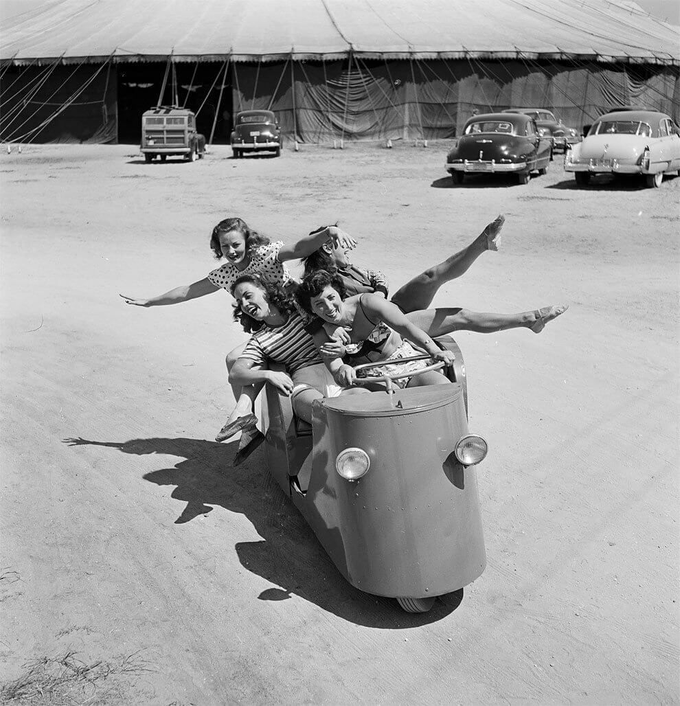 Em 1949, enviada pela LIFE magazine, a fotógrafa Nina Leen documentou o dia a dia de uma trupe circense feminina que fazia parte do famoso, até então, Barnum & Bailey Circus de Sarasota, cidade da Flórida considerada a casa do circo norte-americano.