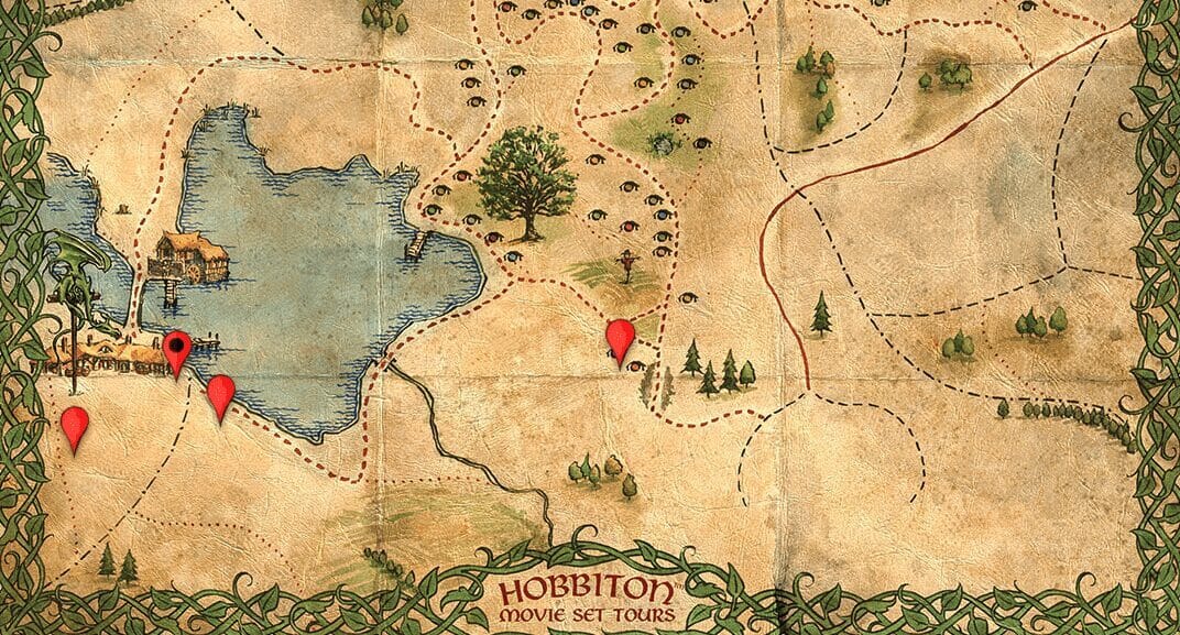 Dos caminhos de Hobbiton, incluindo o Bolsão, passando pela casa de Frodo e Bilbo Bolseiro, até a Pousada do Dragão Verde.