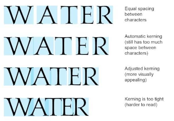 Este processo pode ser métrico, usando valores pré-determinado em uma tabela de kerning associada a cada fonte ou óptico, com algoritmos que calculam o espaço ideal entre os caracteres.
