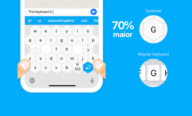 Typewise é um teclado especialmente pensado e desenhado para smartphones (iOS e Android). Ao invés das teclas tradicionais, herdadas das antigas máquinas de escrever, o novo design em forma hexagonal otimiza e amplia ao máximo a superfície de toque.